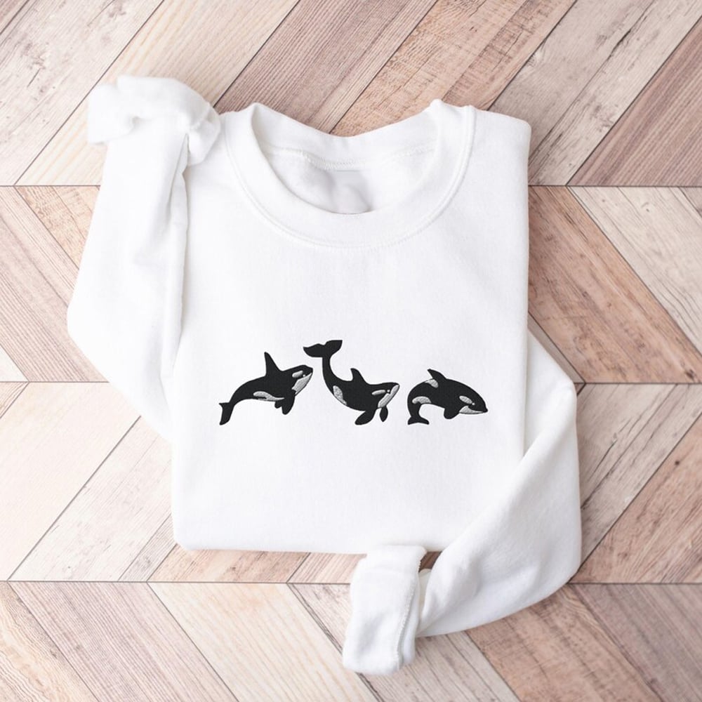 Embroidered Orca Whale Fleece-lined Sweatshirt