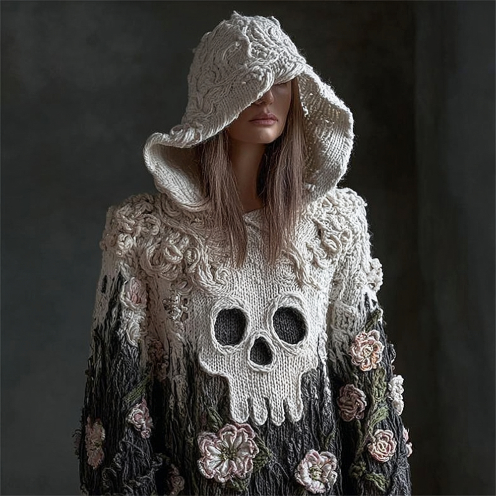 Halloween Ghost Skull Face Floral Art Women's Gradient Knit Hoodie
