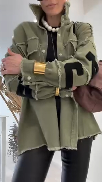 Ladies Collar Patchwork Printed Letter Casual Jacket