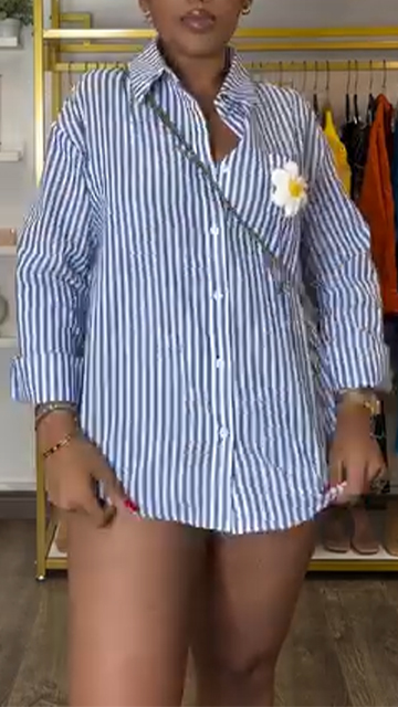 Ladies' Collar Vertical Pattern Hollowed Out Casual Shirt