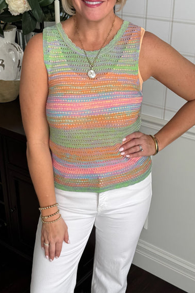 Ladies' Round Neck Hollowed Out Multi-color Casual Top