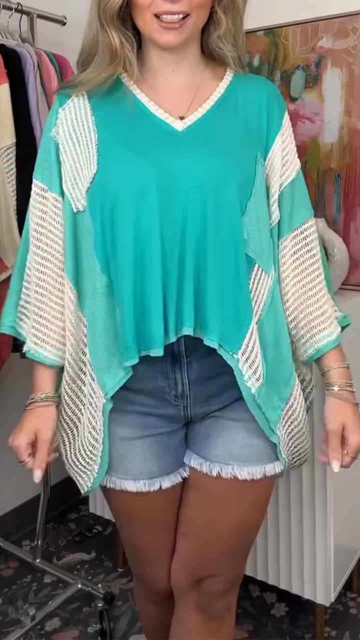 Ladies' V-neck Spliced Hollow Out Casual Top