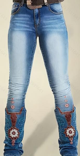 Ladies Washed and Printed Casual Jeans