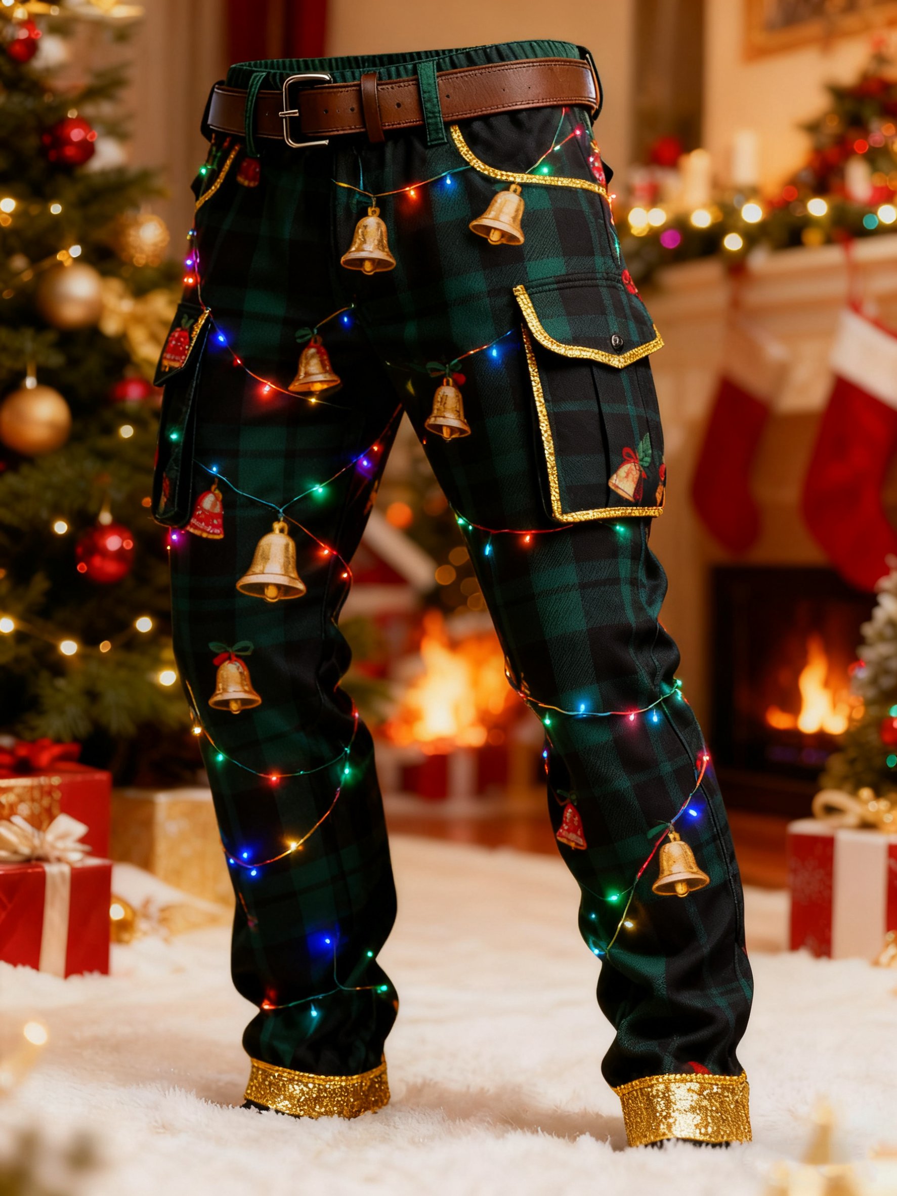 Men's Christmas Lights Bells Printed Cargo Pants