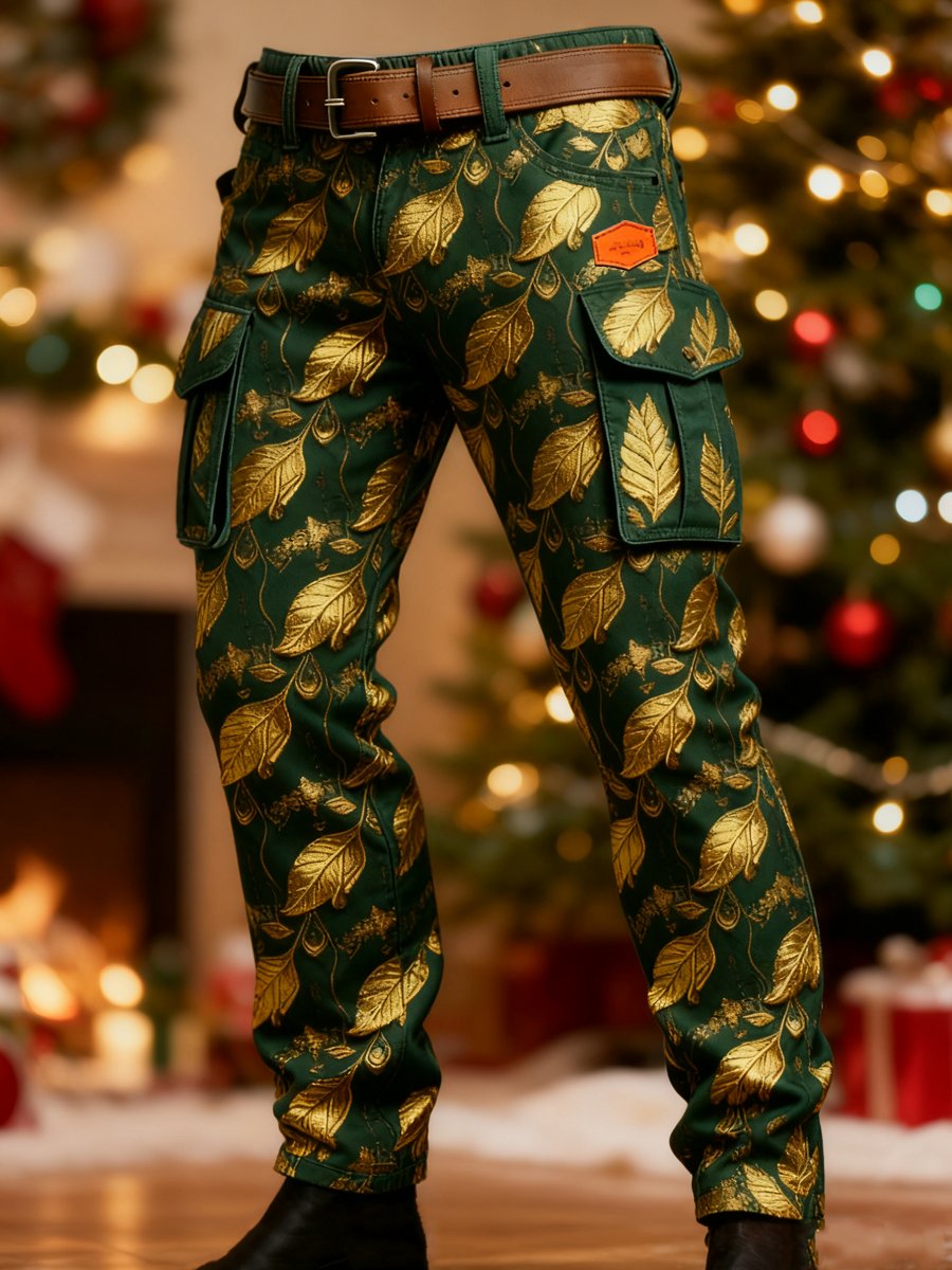 Men's Retro Christmas Print Cargo Pants
