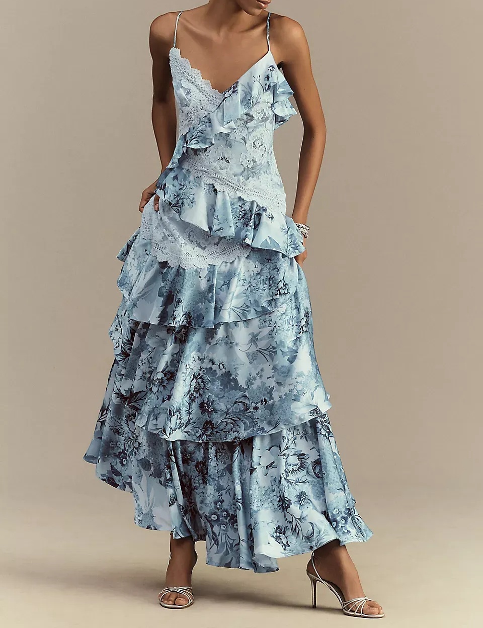 Romance Blue Ruffle Tiered Lace Maxi Dress