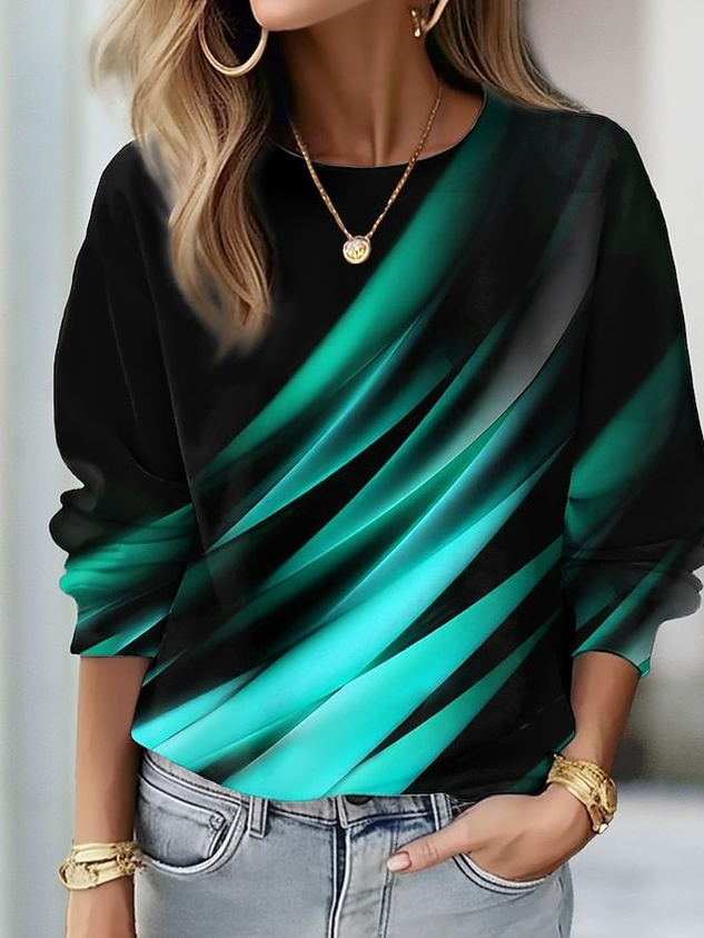 Women Abstract Crew Neck Printing Casual Spring/Fall Long Sleeve Sweatshirt