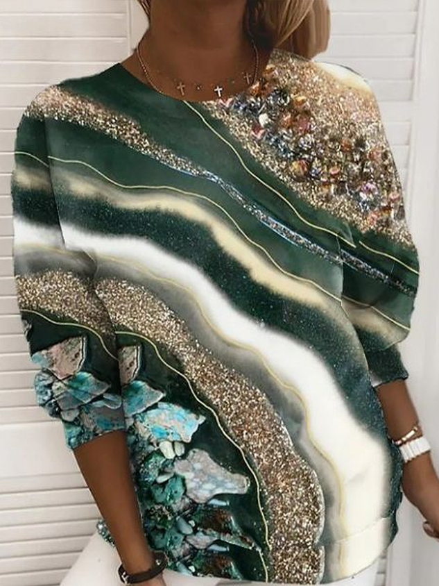 Women Abstract Crew Neck Printing Casual Spring/Fall Long Sleeve Sweatshirt