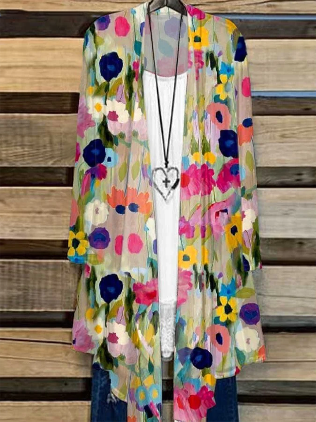Women Floral Spring/Fall Cover-up Casual Lightweight Cardigan