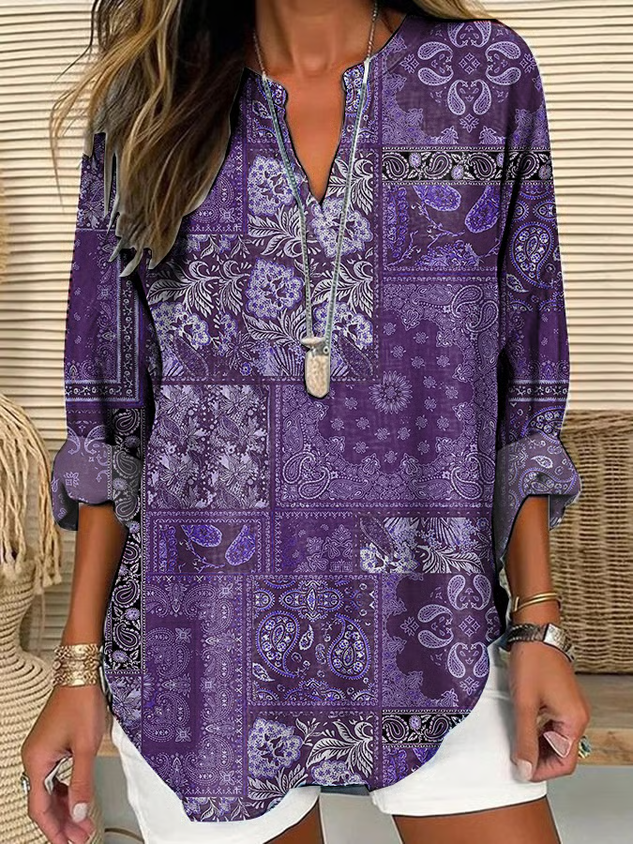 Women Paisley Long Sleeve Blouse Spring/Fall Printing V Neck Daily Casual Top