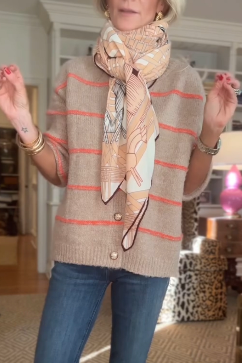 Women Round Neck Breasted Striped Casual Knitted Cardigan