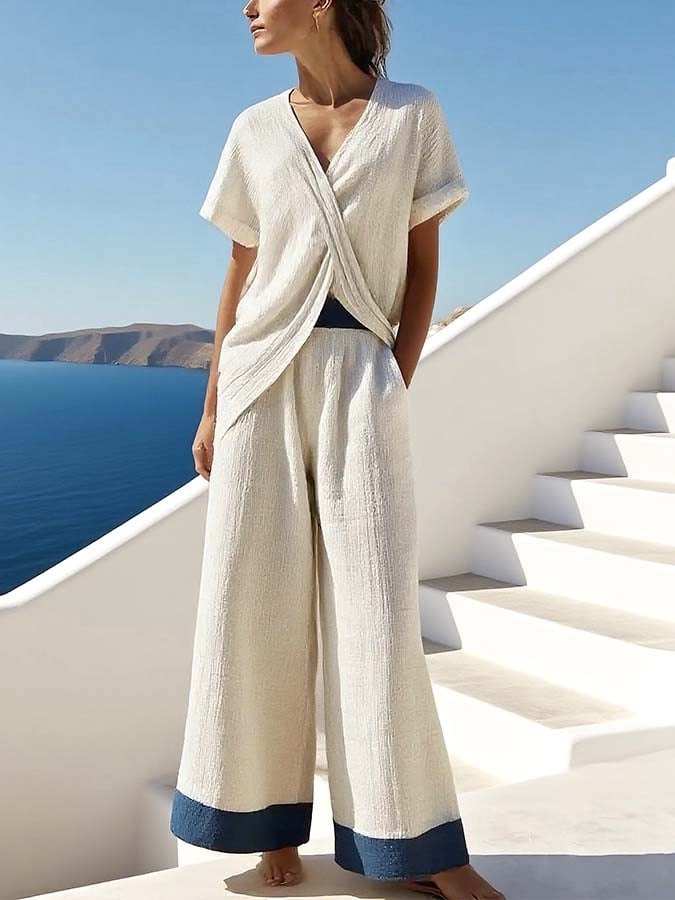 Women'S Casual Loose Contrast Color Stitching Pants Suit