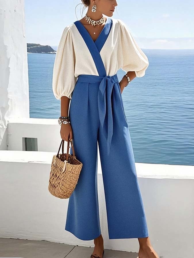 Women'S Casual Loose Contrast Color Stitching Pants Suit