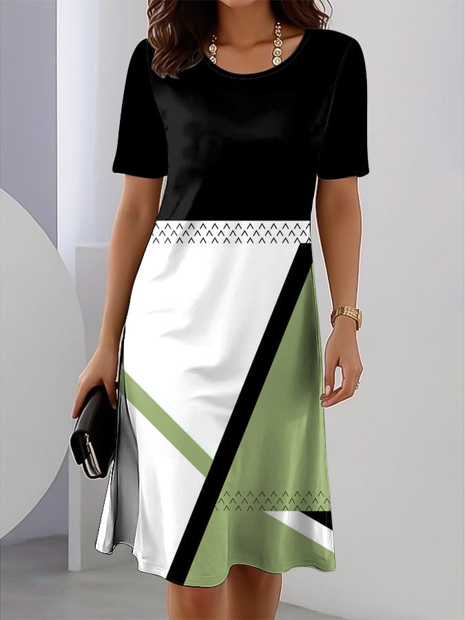 Women'S Casual Round Neck Short Sleeve Printed Dress