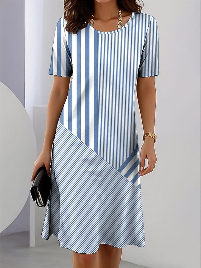 Women'S Casual Round Neck Short Sleeve Printed Dress