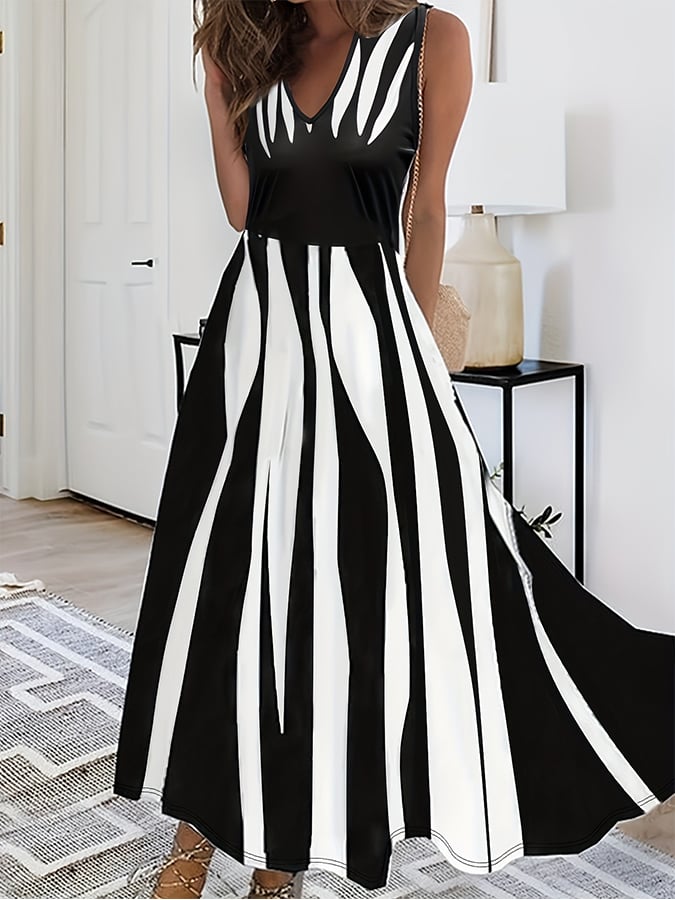 Women's Casual V-Neck Suspender Geometric Pattern Maxi Dress