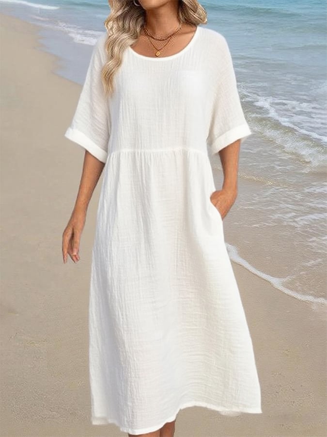Women'S Solid Color Casual Round Neck Mid-Length Sleeve Dress