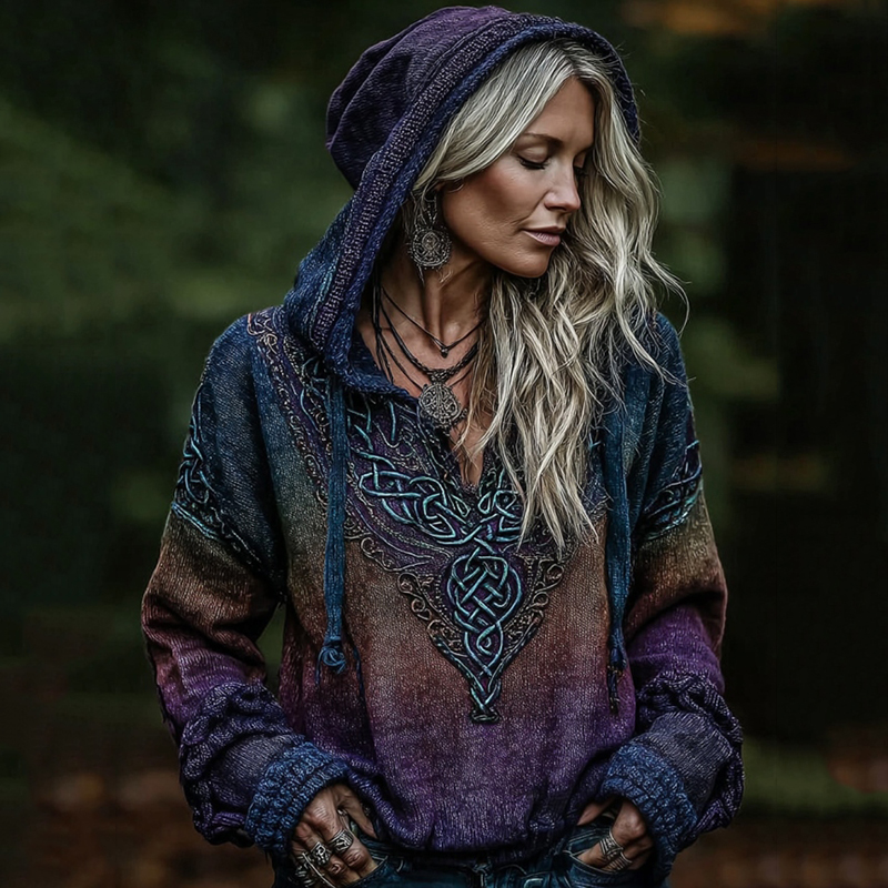 Women's Viking Celtic Knot Art Knitted Warm Hooded Sweater
